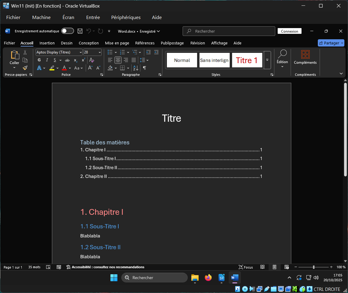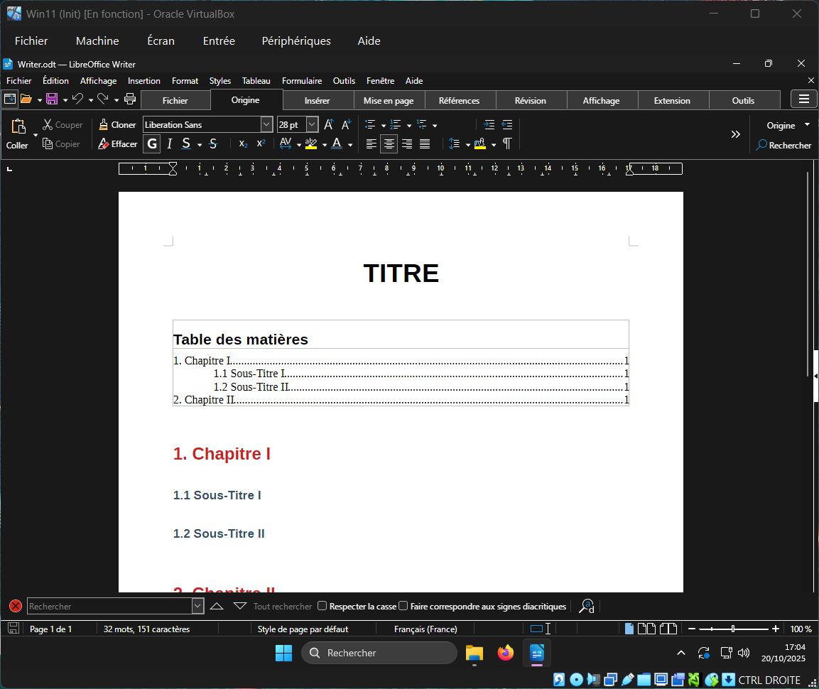 J'ai installé MSofficeProPlus2024Retail et LibreOffice_25.8.2_Win_x86-64 sur une VM Windows 11.