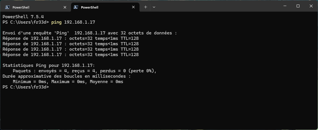 On fait un Ping pour vérifier, et c'est OK cette fois-ci.