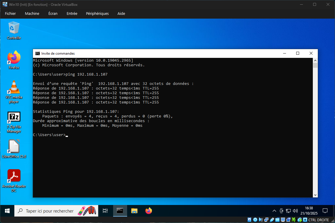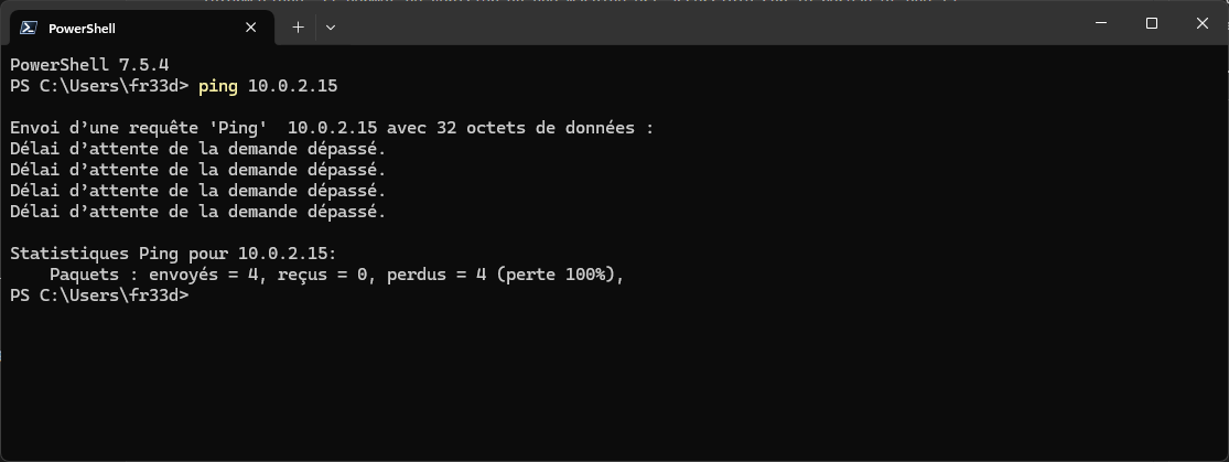 Actuellement, sur Windows 10 et Windows 11, il est impossible de pinguer vos machines virtuelles (VM) depuis votre ordinateur hôte (votre PC personnel) sous VirtualBox.