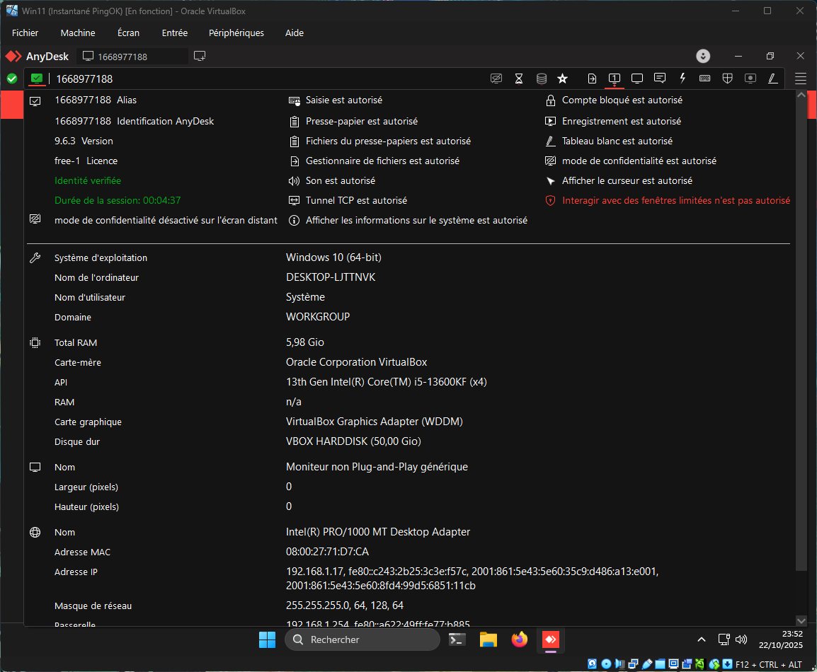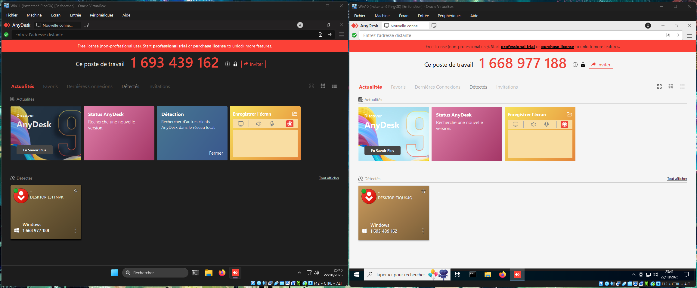 En lançant Anydesk sur les 2 machines qui ont la découverte réseau, elles se détectent immédiatement l'une - l'autre.