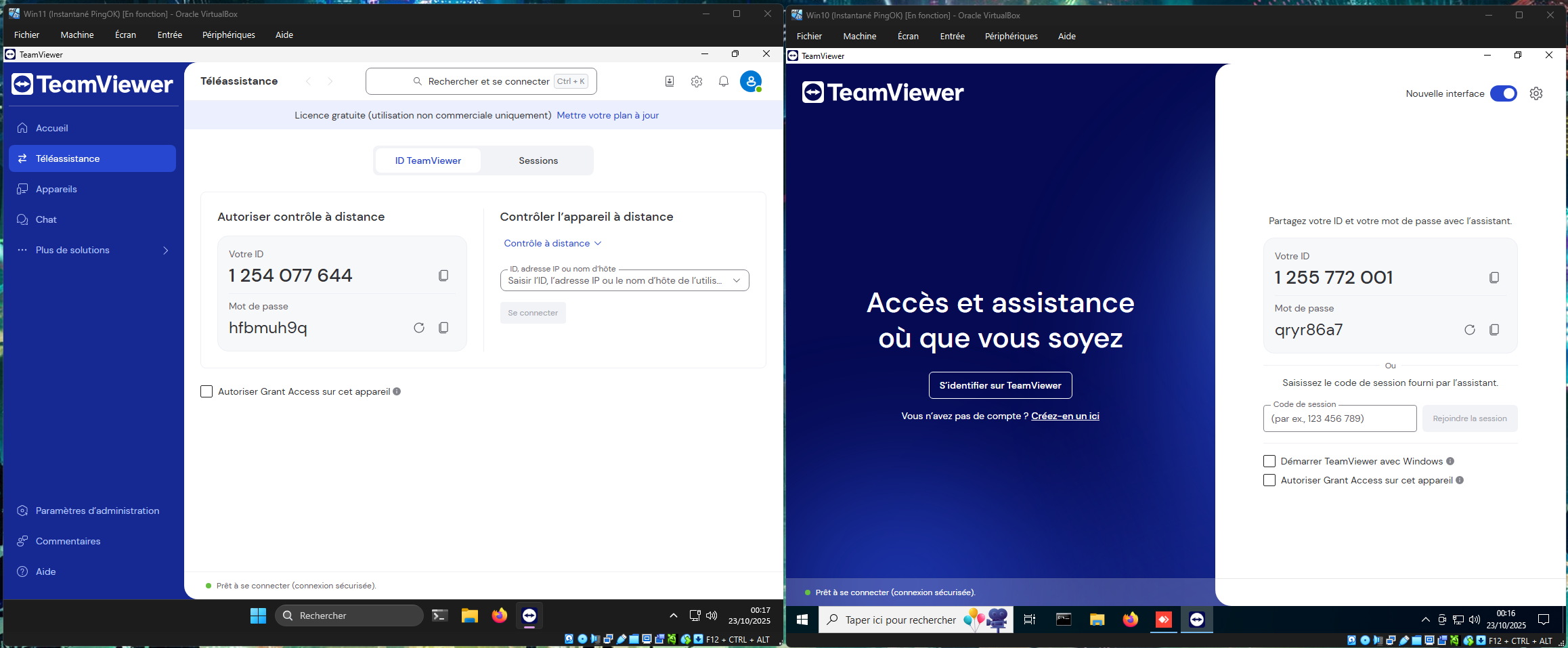 En lançant Teamviewer sur les 2 machines elles ne se détectent pas comme Anydesk, de plus il faut créer un compte Teamviewer vérifié pour pouvoir prendre le contrôle à distance. J'ai créé un compte que j'utiliserais sur la machine de gauche (Win11) pour prendre le contrôle de la machine de droite (Win10).