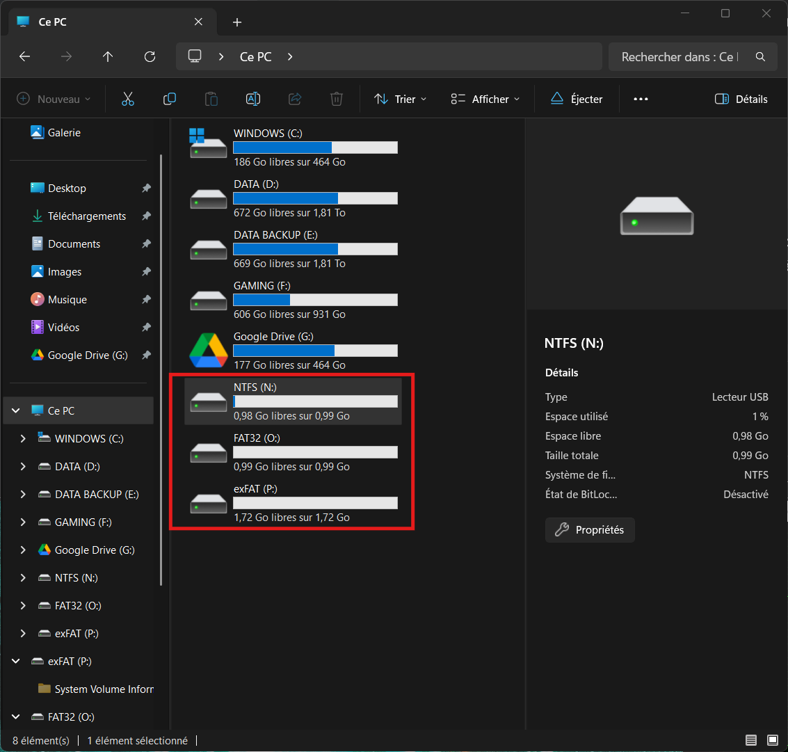 Et ils sont direcement reconnus par Windows dans l'explorateur.