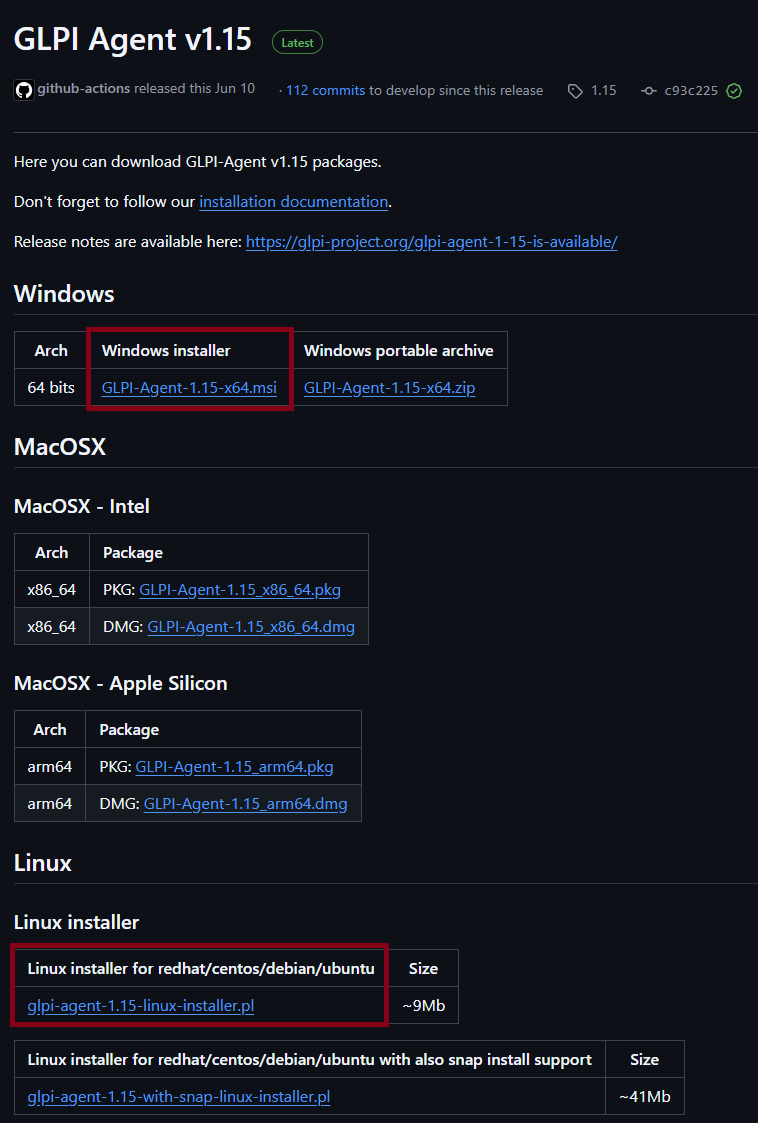 - Je vais sur le site officiel GLPI Project qui me renvois sur le Github pour trouver la dernière version de l'agent