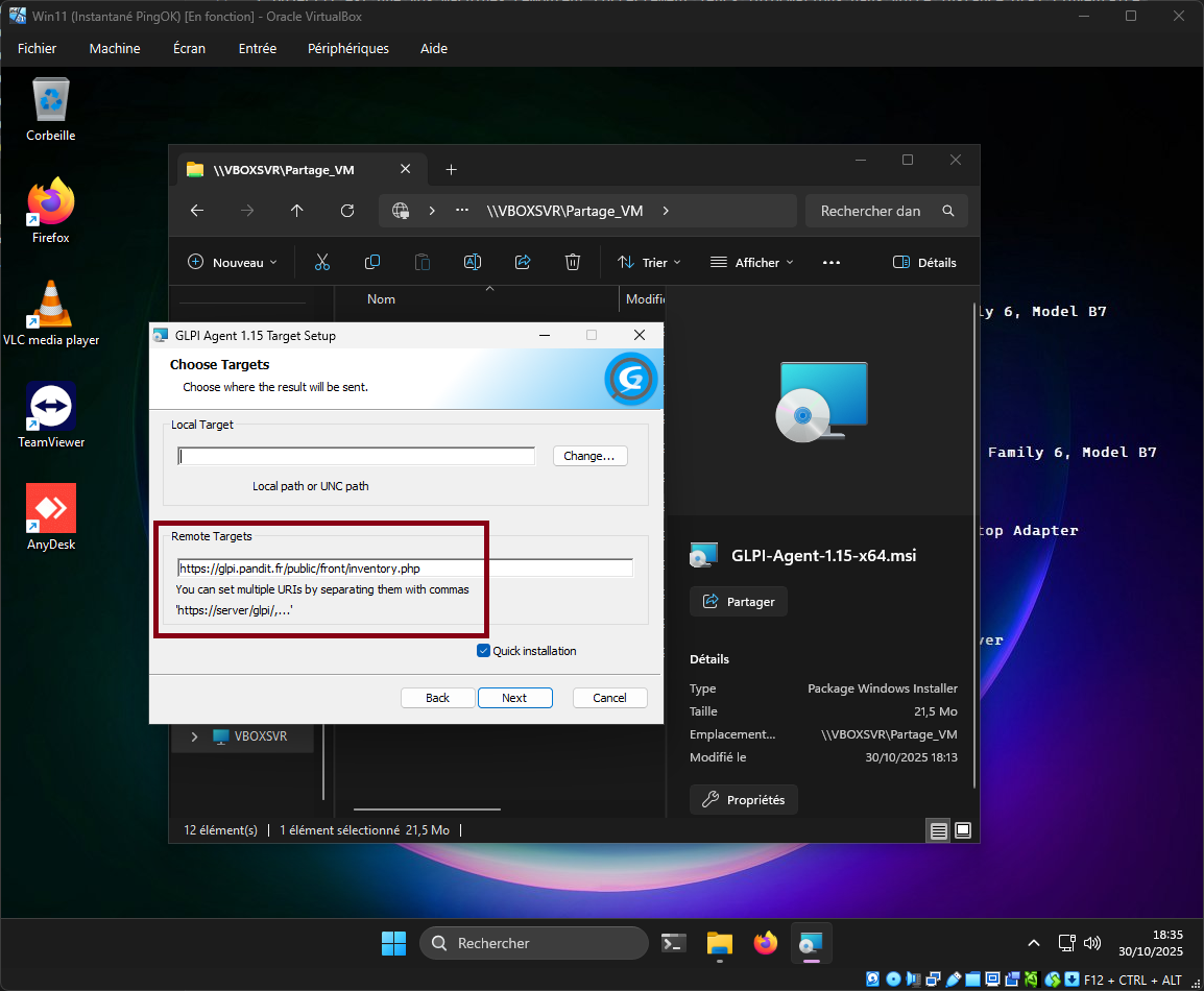 1️⃣ Installer le GLPI Agent sur une machine virtuelle (ou plusieurs, si vous voulez aller plus loin).