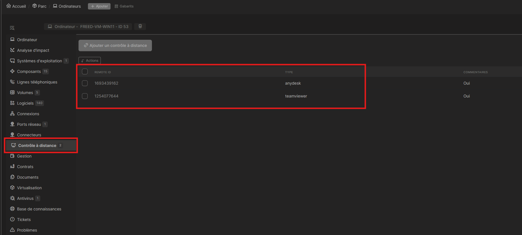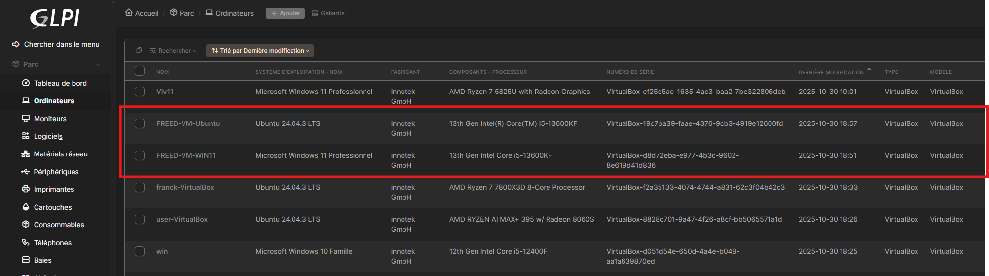 - Dans mon server GLPI je retrouve bien mes 2 machines !