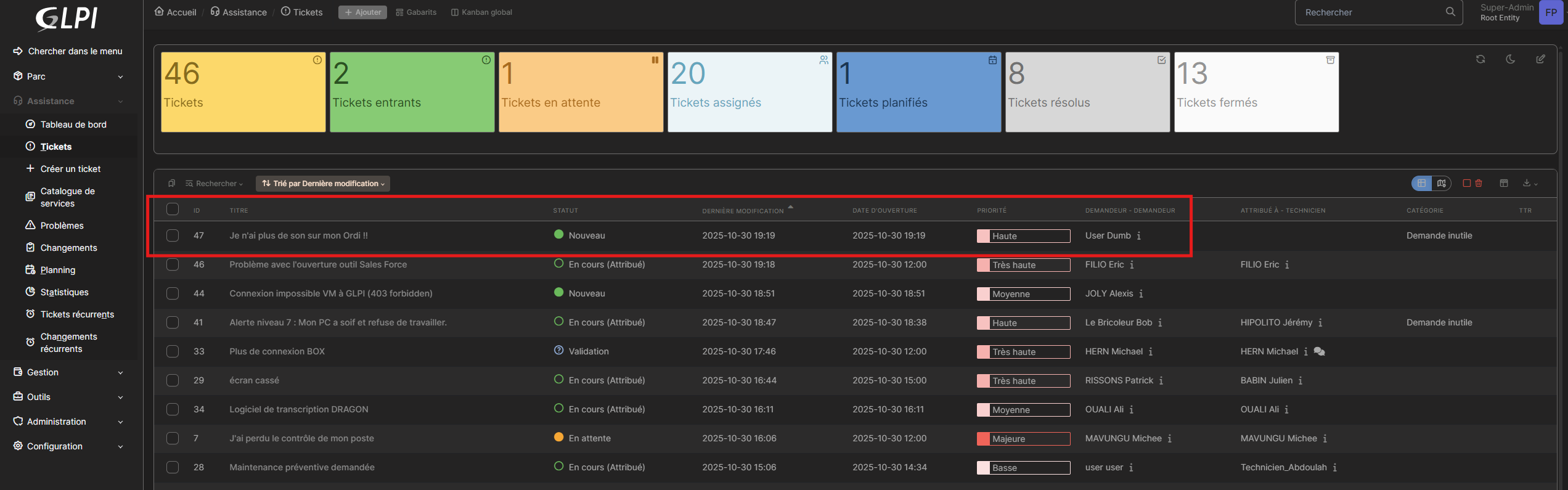 Tester la gestion des tickets dans GLPI 🎫
