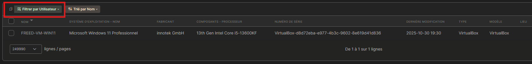 - Je peux retrouver sa machine en filtrant mon parc par Utilisateur contenant son nom.