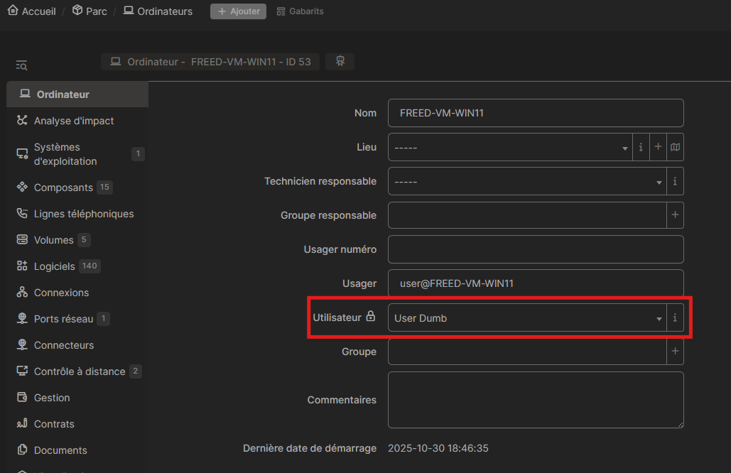 - Sachant que notre service à livré la machine à cet utilisateur je l'enregistre.