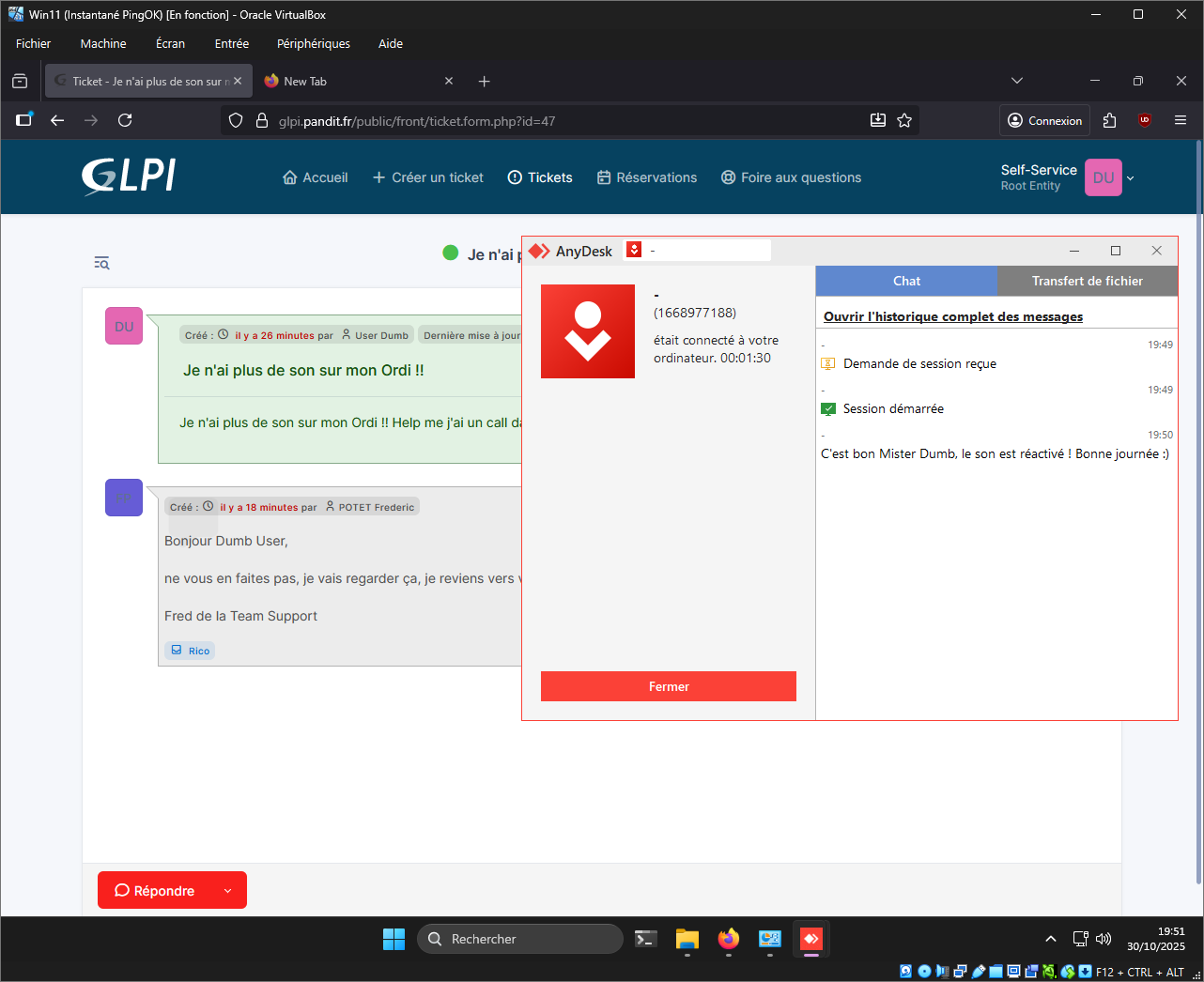 - Une fois validé par l'utilisateur, on peut cloturer le ticket.