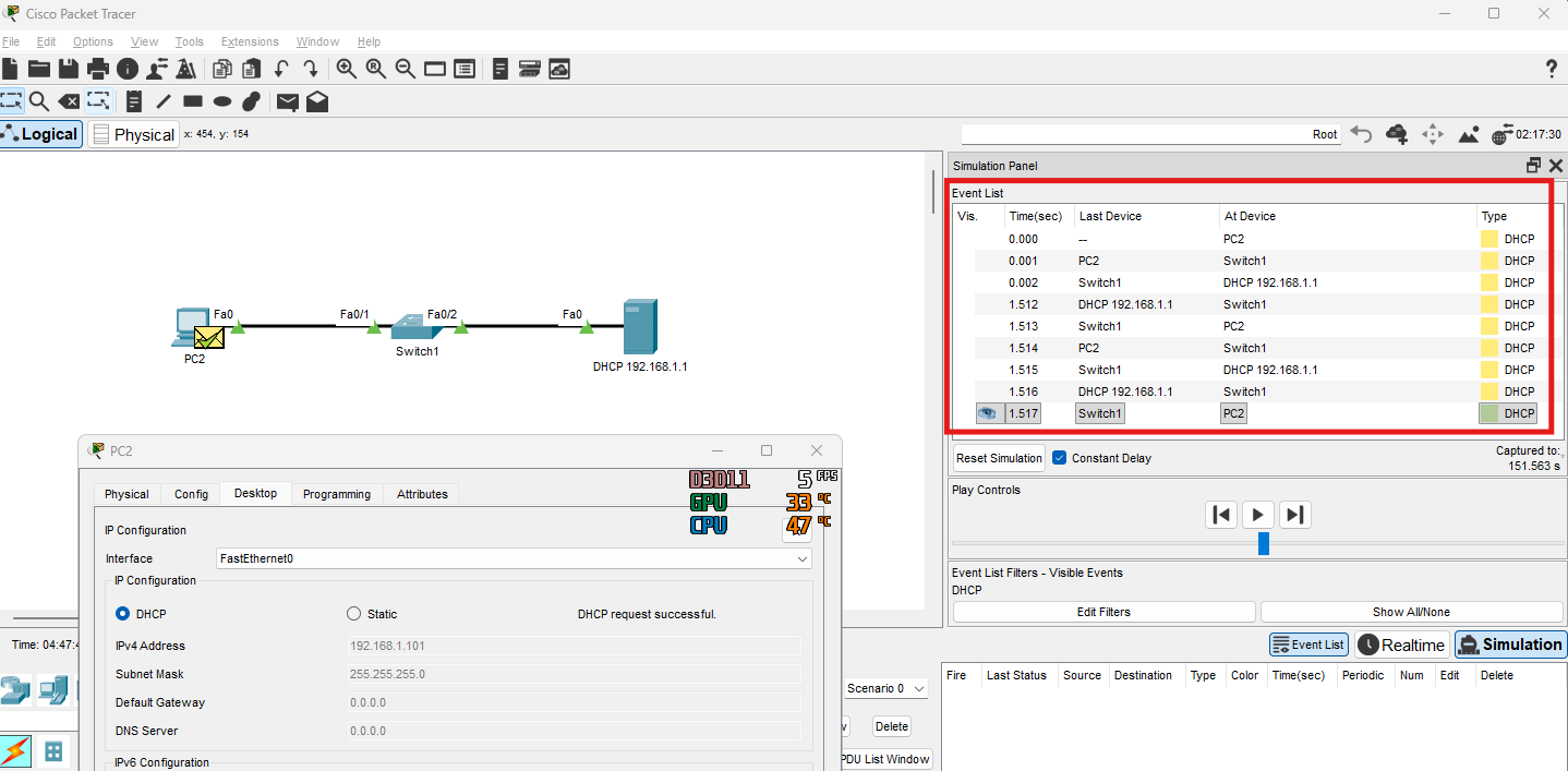 DHCP test dans packet tracer