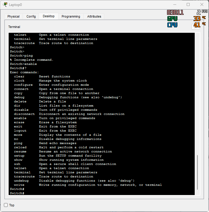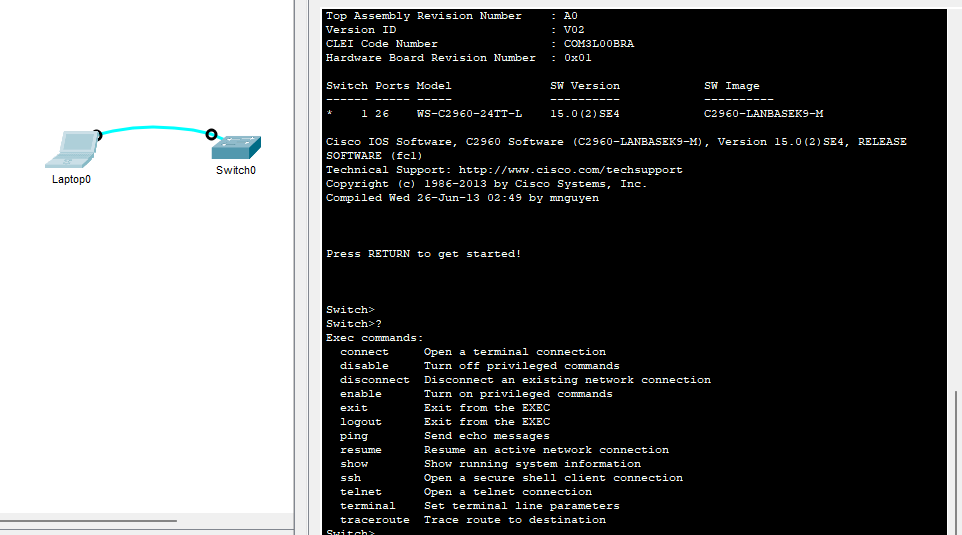 Connexion Switch Cisco depuis son port Console dans Packet Tracer