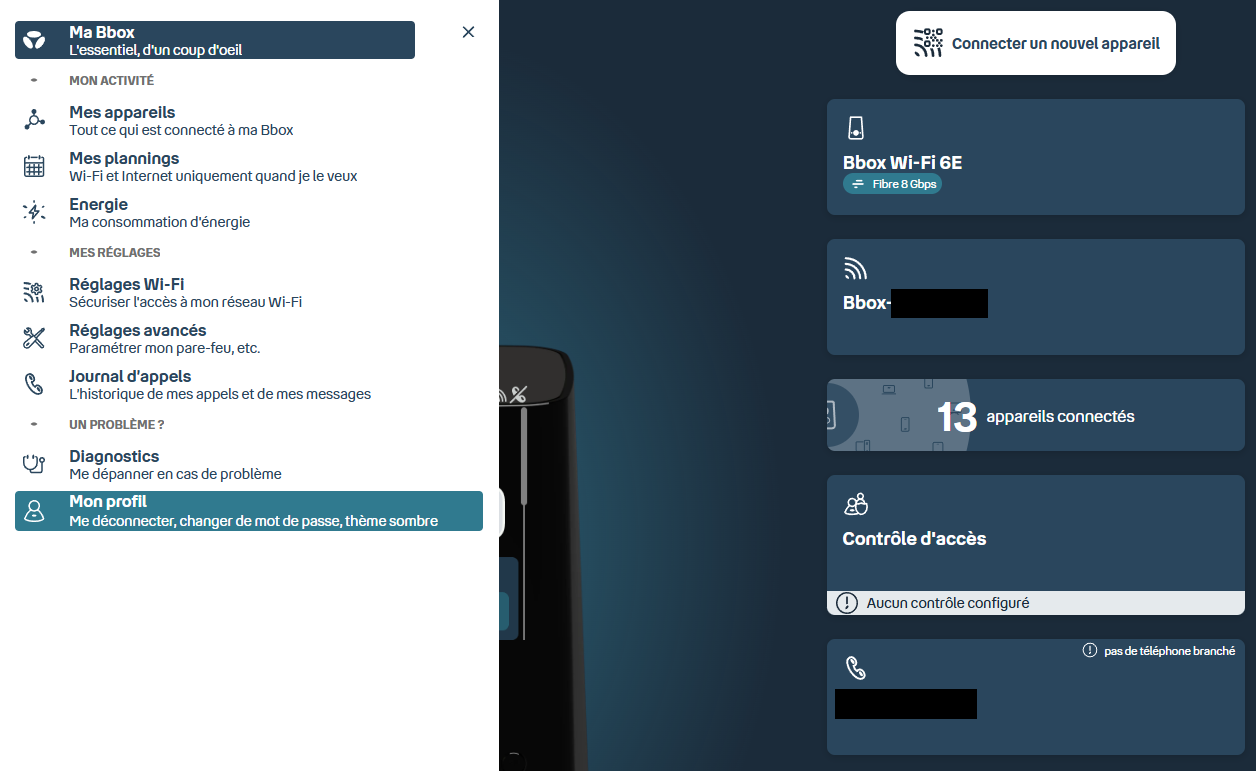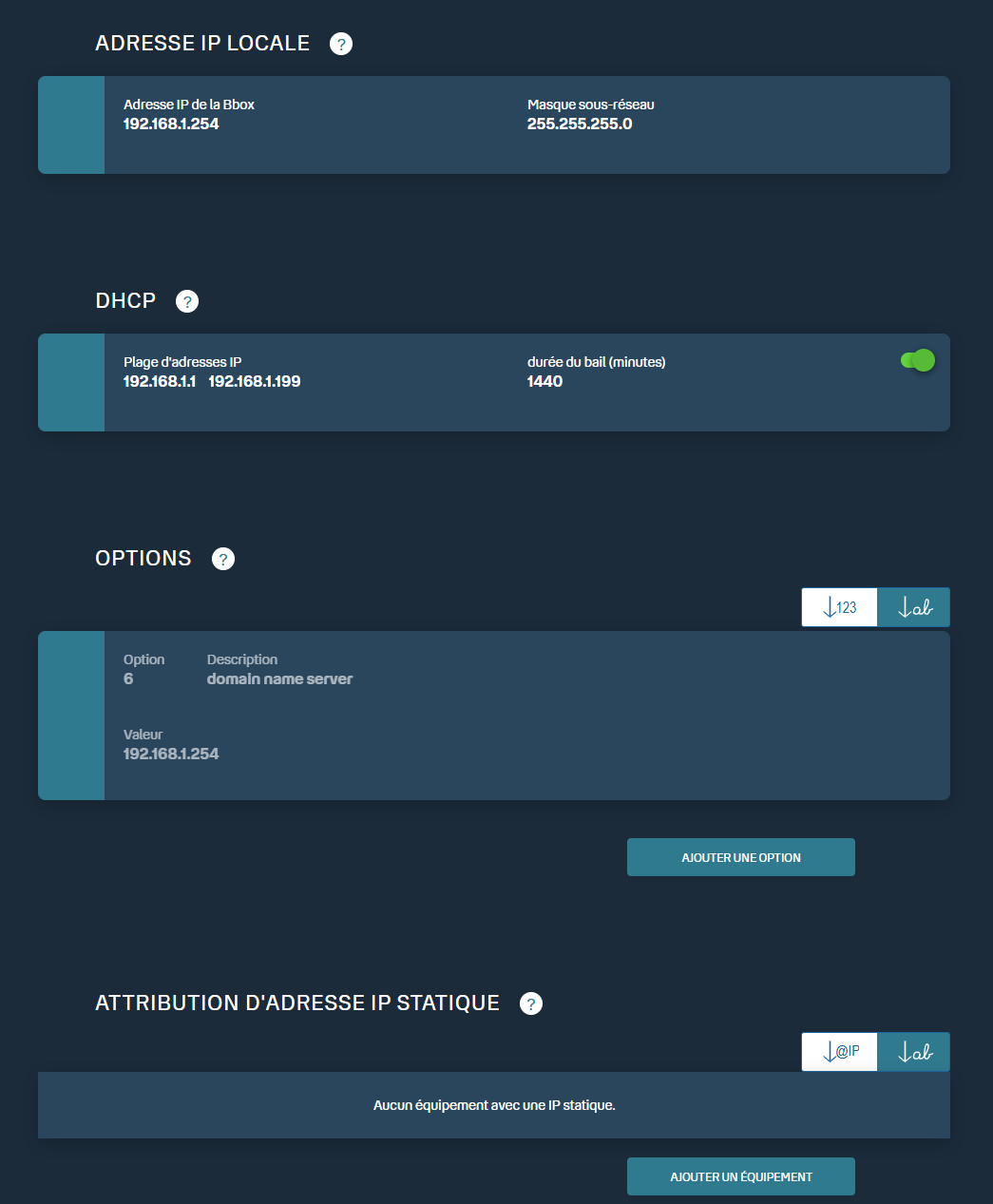 J'accède a l'interface de ma box via l'IP 192.168.1.254, il y aune vue globale mais dans le menu les options sont intéressantes.