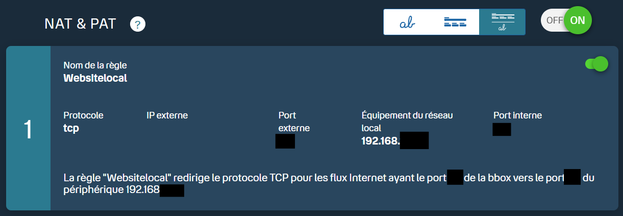 Redirection de port dans la Box.