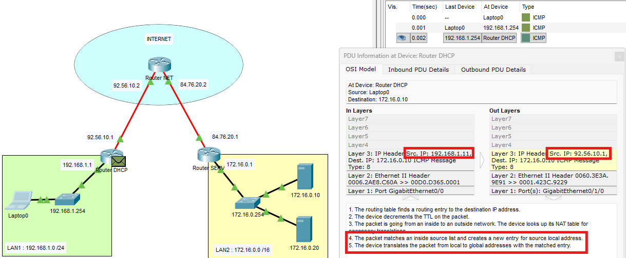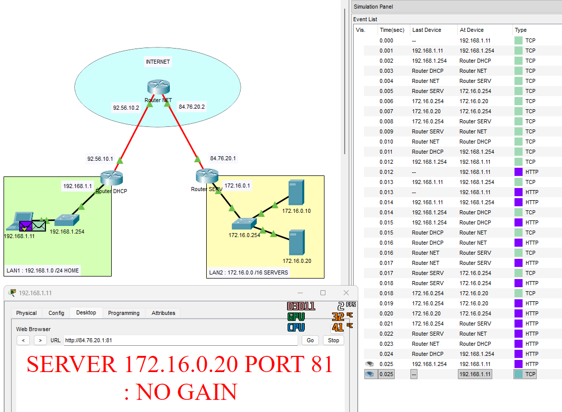 2. NAT et redirection dans PT ⌨️