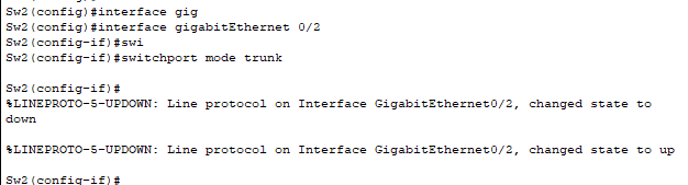 On active le mode Trunk sur les ports Gig qui les relient pour que les Vlans puisse communiquer d'un Switch à l'autre.