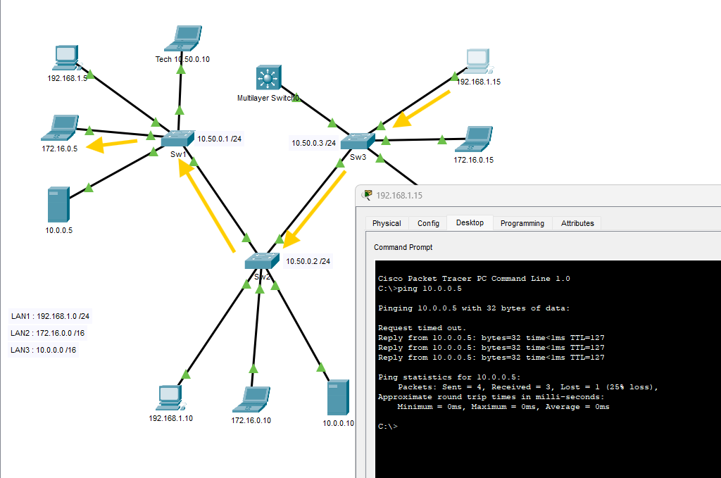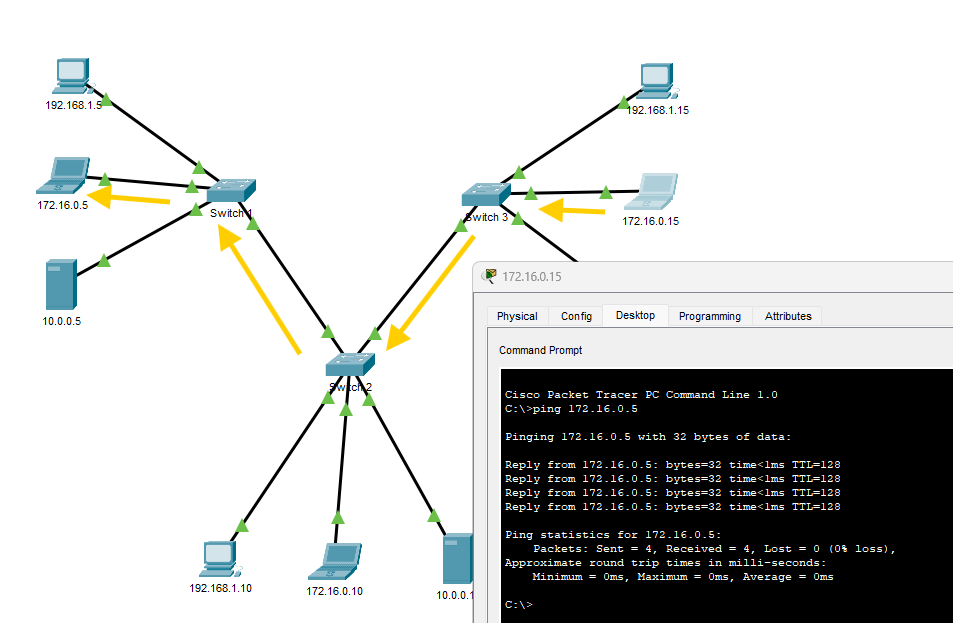 Ping d'un PC en 192.168.1.x vers un 172.16.0.x OK !