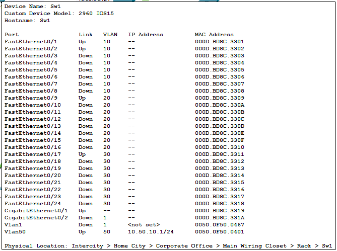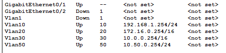 Pour sécuriser nos Vlans, on va créer un Vlan Admin qui sera le seul en mode Natif (le seul qui peut envoyer des paquets untagged, en remplaçant le Default) avec la commande trunk native, et on va limiter les Vlans qui peuvent passer (le 10 20 30 et 50) en mode trunk avec trunk allowed.