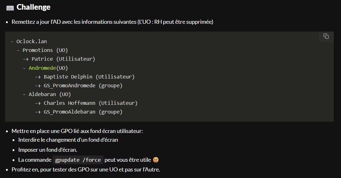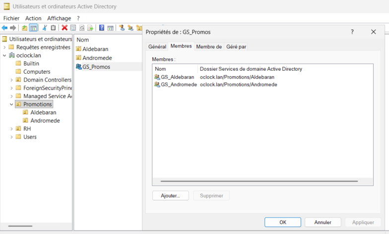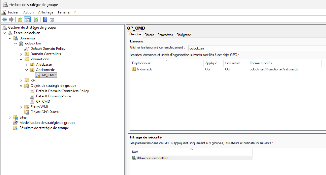 On peut créer une nouvelle Stratégie, et décider de l'appliquer seulement à la promo Andromede en y glissant le lien de la GPO dans l'Unité d'Organisation