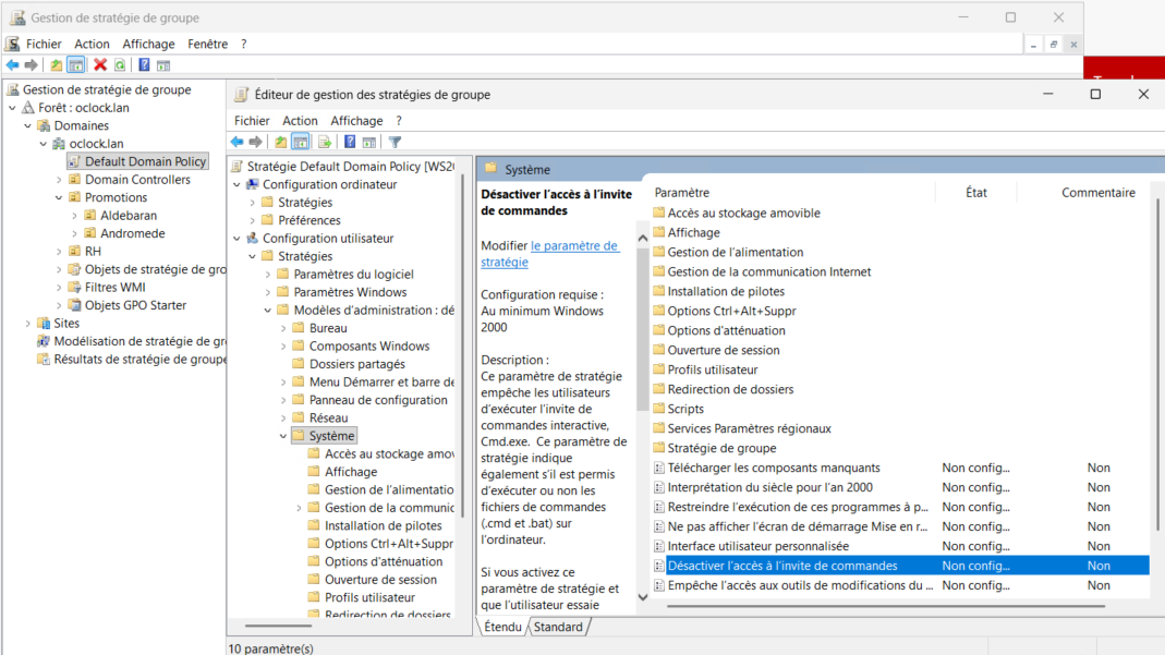 En faisant clic droit:modifier sur la Stratégie Default Domain Policy, on peut éditer les règles GPO
