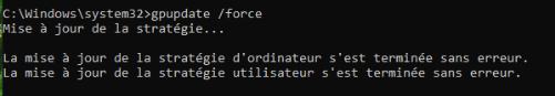 90min de délais si on change, pour le forcer : GPUpdate /force puis déco/reco l'utilisateur
