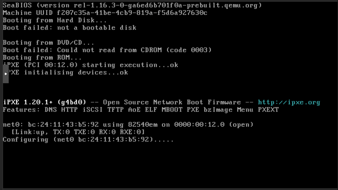 Lors du démarrage on peut voir le PXE en action