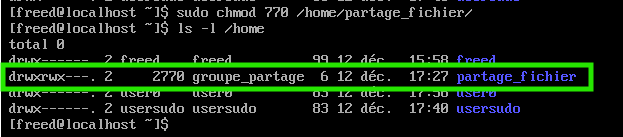 sudo usermod -aG groupe_partage freed Ajoute l'utilisateur initial (freed) au nouveau groupe.