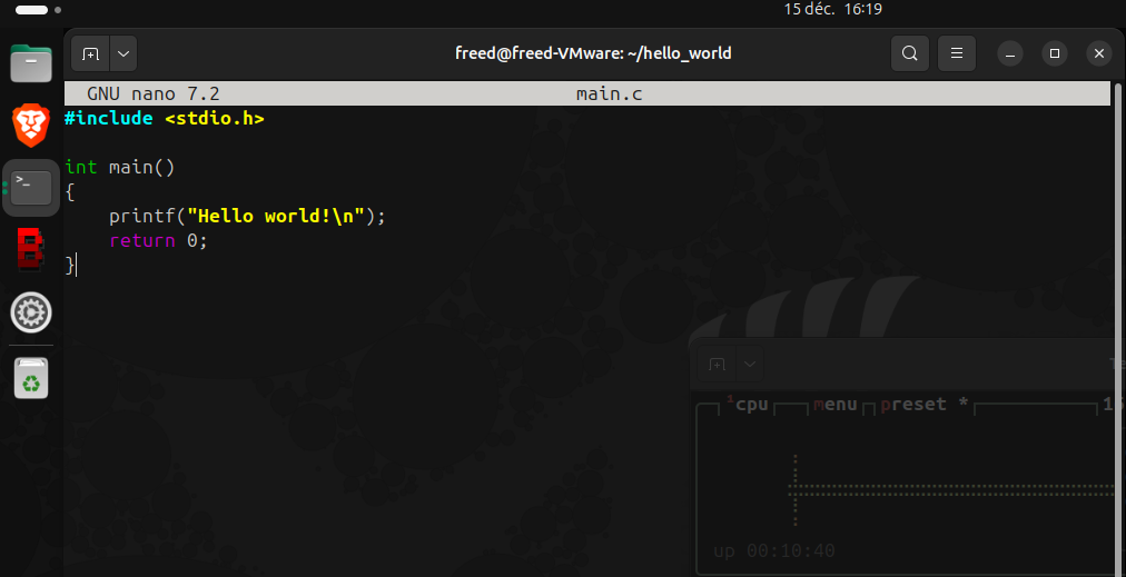 Créons un Hello World en C