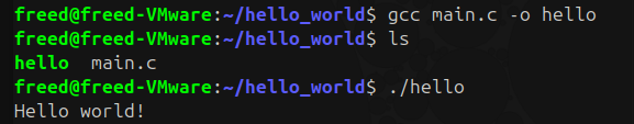 Compilation avec build-essential en précisant le nom du programme avec -o (Output)