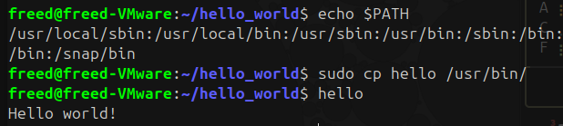 On va copier le binaire ainsi créer dans le dossier utilisateur /bin pour qu'il soit accessible depuis partout avec le $PATH.