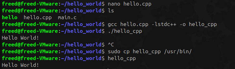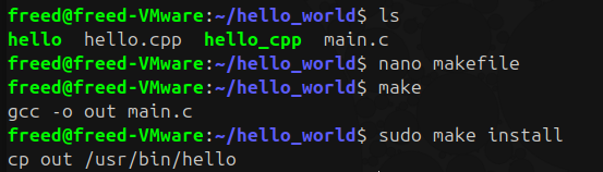On va créer une fichier makefile et l'utiliser pour se simplifier les choses, exemple avec notre hello_world