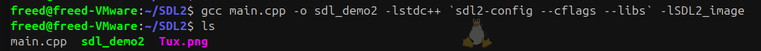 Notre programme affiche l'image de Tux qu'on a utilisé à l'écran et qu'on peut bouger avec nos flèches.