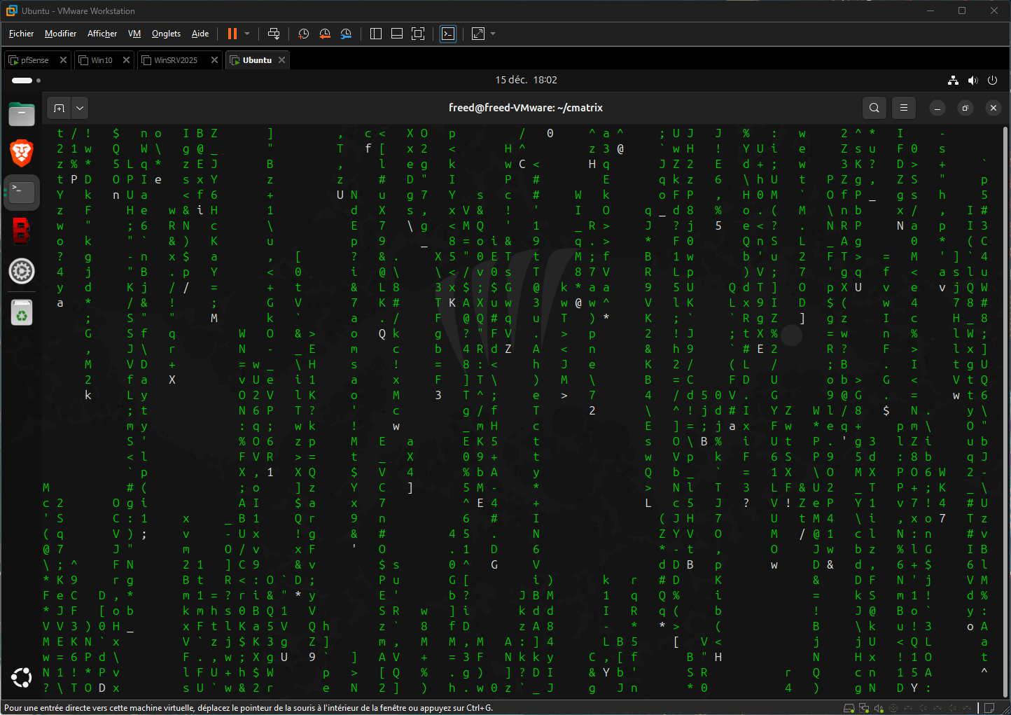 On peut maintenant lancer notre programme cmatrix