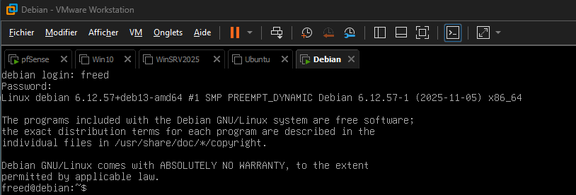 On met notre VM par pont pour y avoir accès sur notre réseau, sudo systemctl restart networking pour renouveler notre IP, et ip a pour avoir l'IP du serveur et s'y connecter dessus.