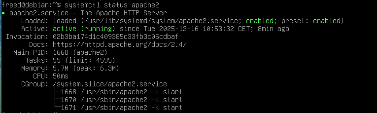 Redémarrage du service Apache avec la commande sudo systemctl restart apache2