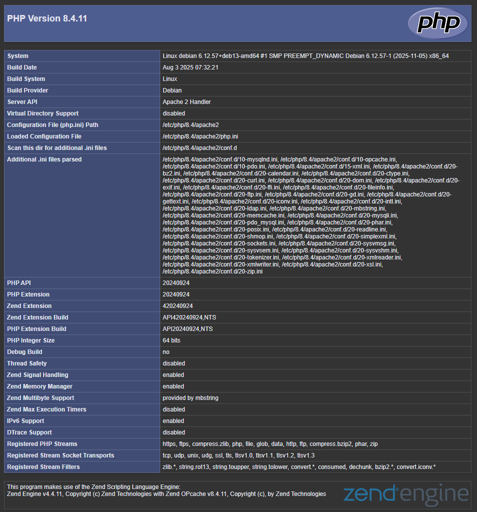 Création d'un fichier PHP basique avec echo "<?php phpinfo(); ?>" | sudo tee -a /var/www/html/info.php et pour vérifier sur http://192.168.1.86/info.php