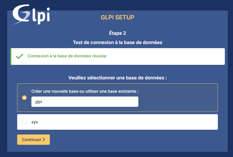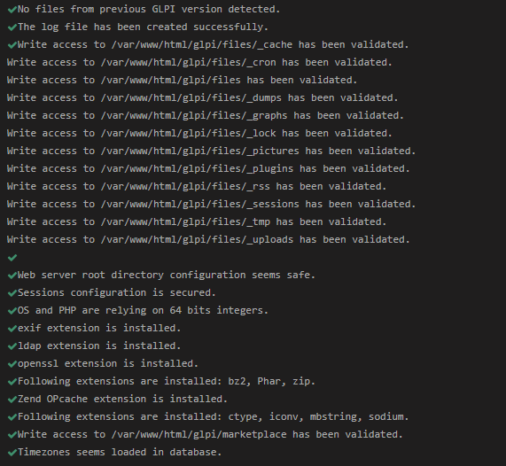 C'est OK, maintenant on passe Ă l'installation de GLPI