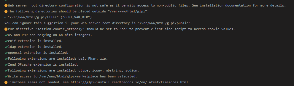 Erreur 1 : le site GLPI doit pointer sur /public et non /glpi