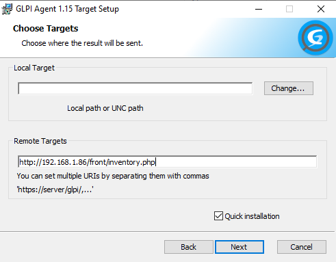 modifier le fichier config et ajouter notre serveur server = http://10.0.0.55/glpi/