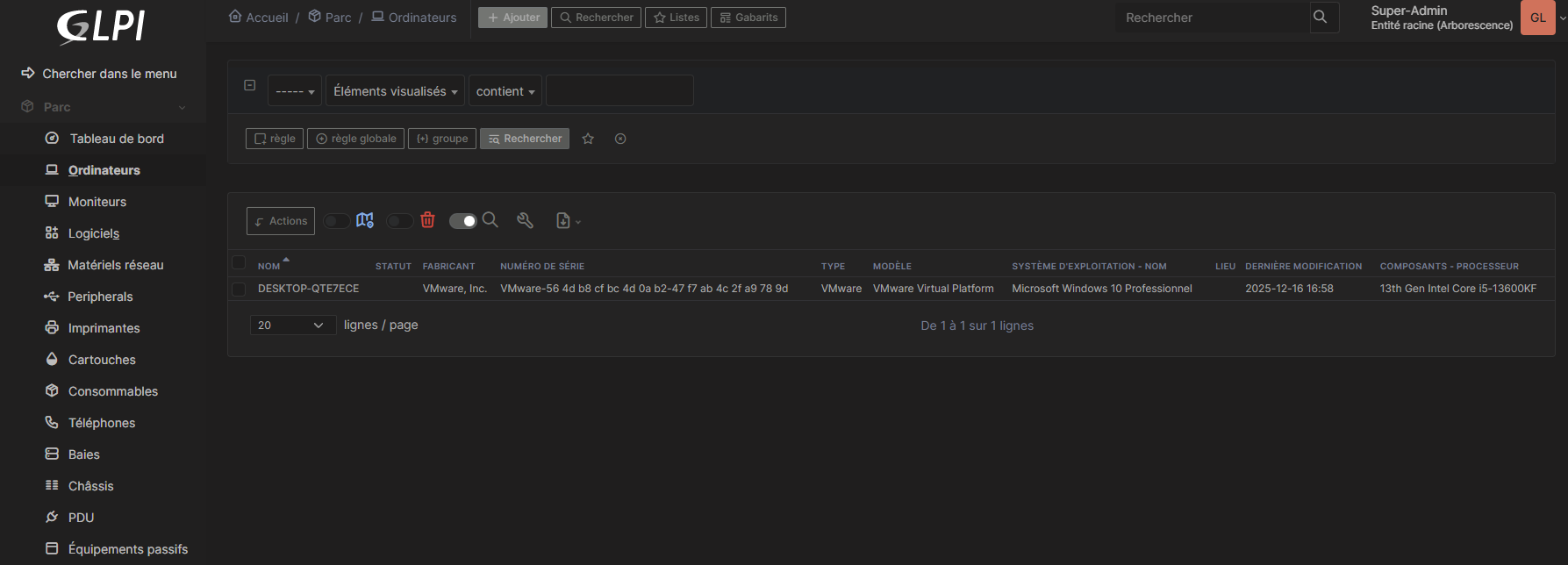 Prérequis : avec une VM Windows avec l'agent GLPI Windows et qui est sur le même réseau que notre serveur.