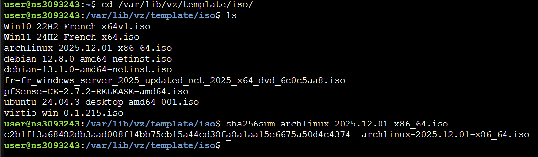 On compare avec https://archlinux.org/iso/2025.12.01/sha256sums.txt