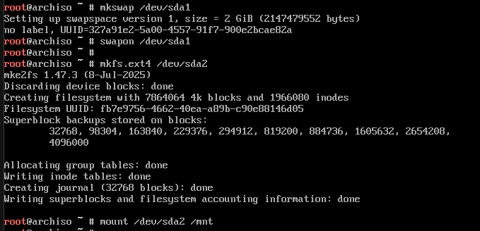pacstrap /mnt base linux linux-firmware nano networkmanager
