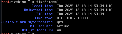 ln -sf /usr/share/zoneinfo/Europe/Paris /etc/localtime et on synchronise l'horloge matérielle hwclock --systohc