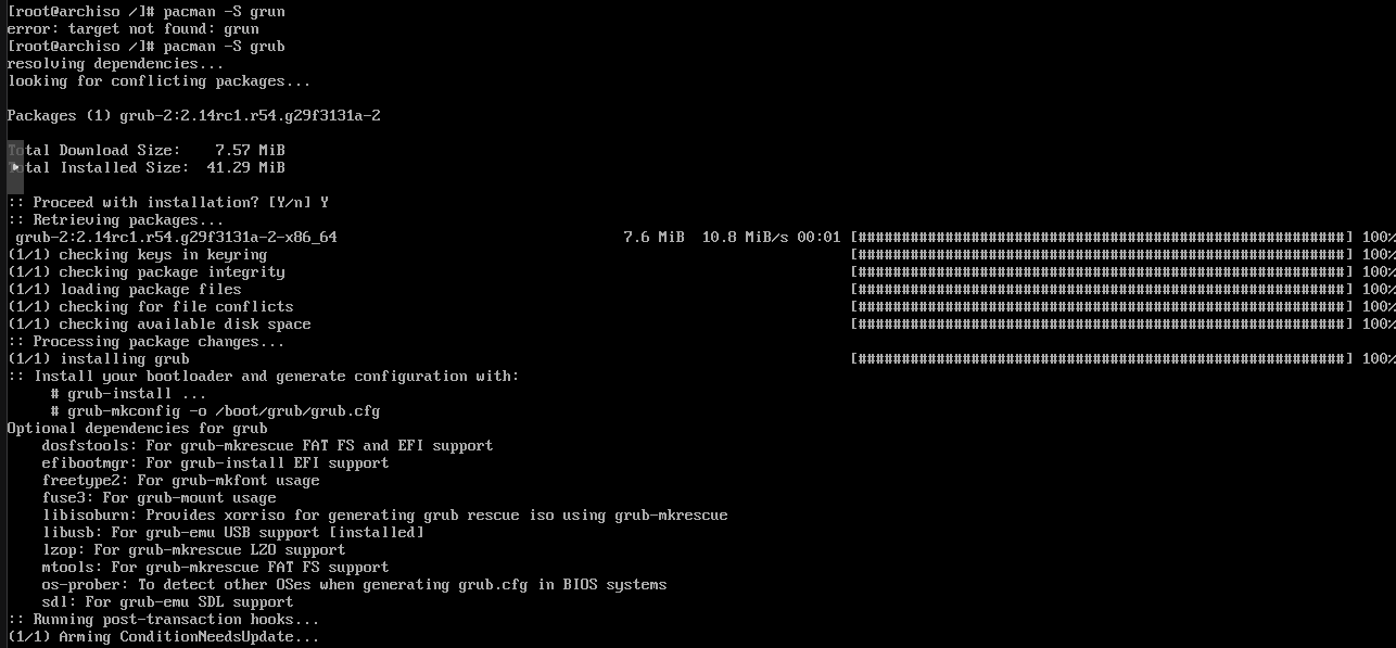 On génère le fichier de configuration grub-mkconfig -o /boot/grub/grub.cfg