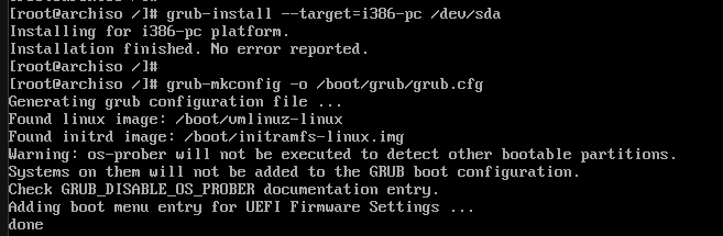 On installe l'amorce sur le disque dur grub-install --target=i386-pc /dev/sda