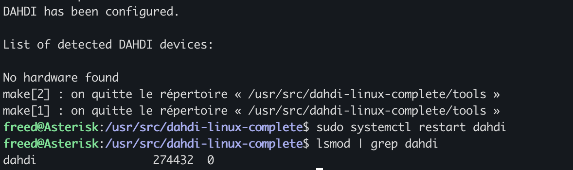 Maintenant on va installer dahdi (qui sert normalement aux interfaces physiques d'un vrai serveur)