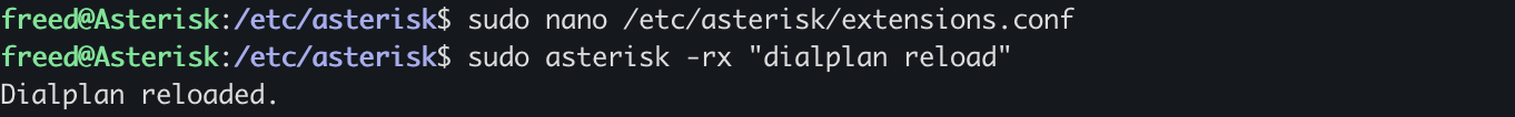 On peut tout reload d'Asterisk avec sudo asterisk -rx "core reload"