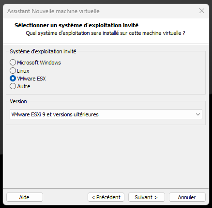 Lors de la création de la VM on sélectionne VMware ESX comme système :