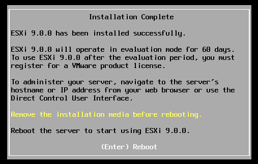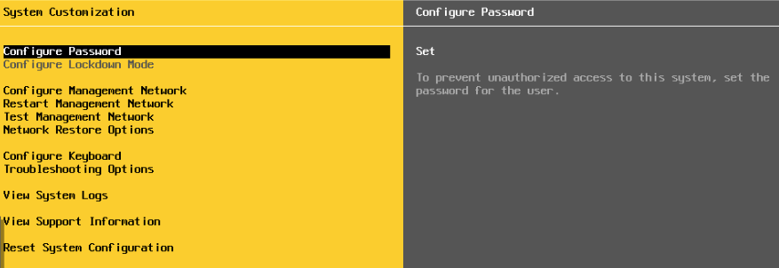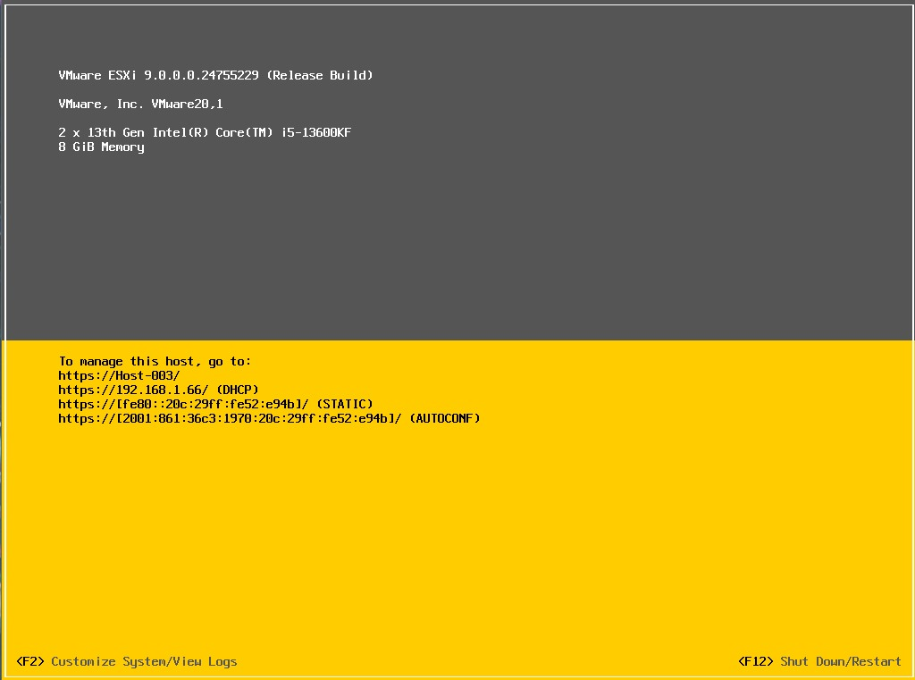Après reboot on arrive bien sur le DCUI (Direct Console User Interface)