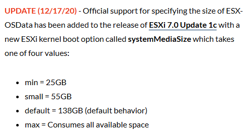 https://williamlam.com/2020/05/changing-the-default-size-of-the-esx-osdata-volume-in-esxi-7-0.html