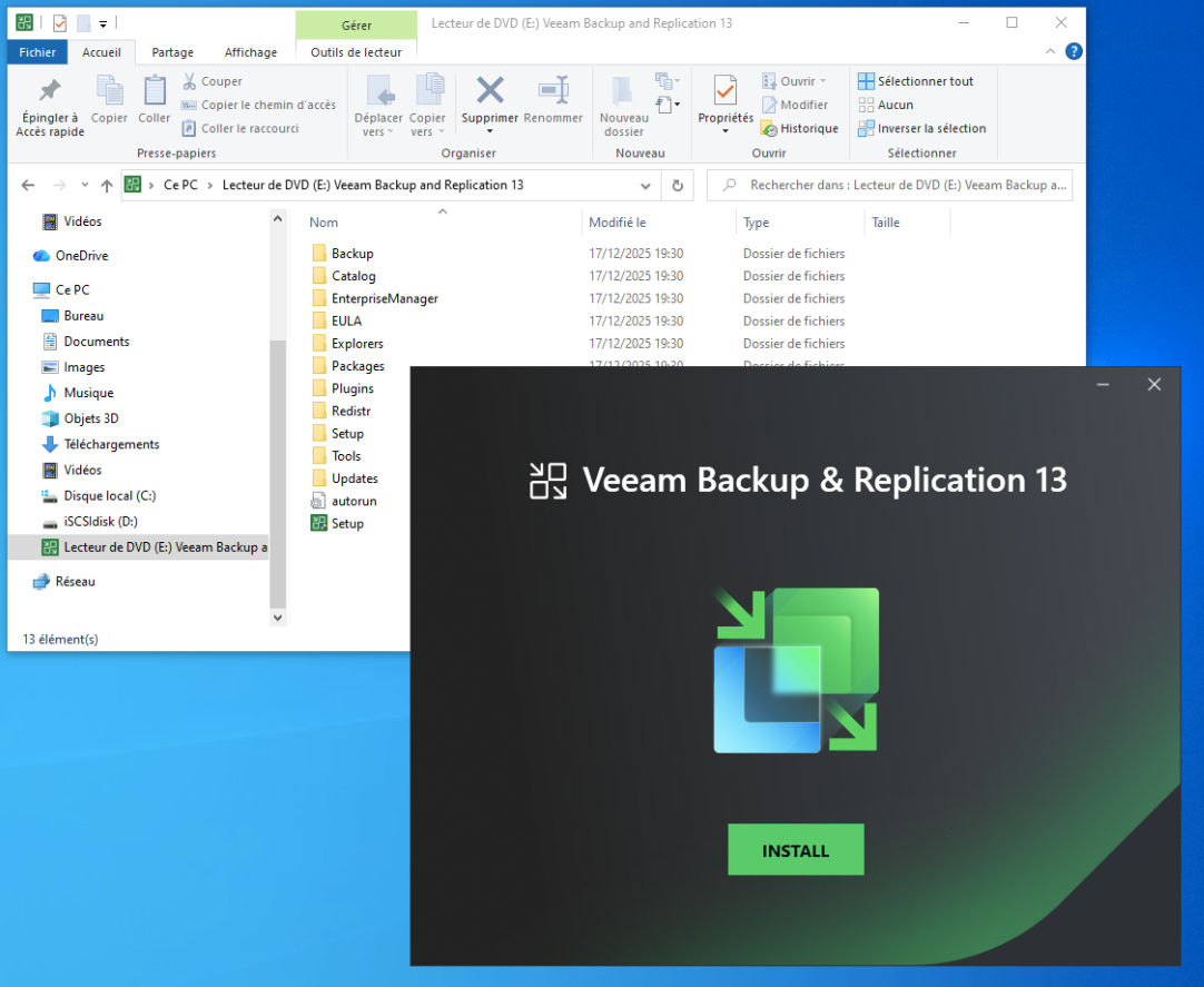 Télécharger l'ISO ici https://download2.veeam.com/VBR/v13/VeeamBackup&Replication_13.0.1.1071_20251217.iso